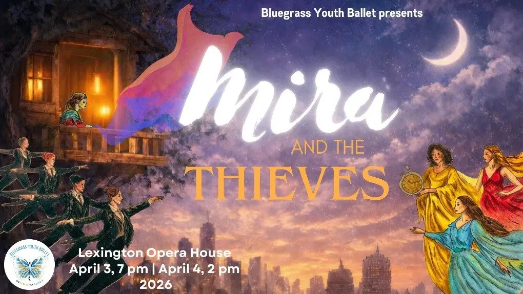 LEXINGTON, KY (March 3, 2026) –– Bluegrass Youth Ballet is excited to bring Mira and The Thieves to the Lexington Opera House on Friday, April 3, and Saturday, April 4. Mira and The Thieves is an original, visually striking ballet set in a world racing toward emptiness. High above the city in a hidden treehouse lives Mira, a quiet, watchful child who notices what others have forgotten. Below her, a once-vibrant community is slowly consumed by the Thieves: elegant yet ominous figures who steal not gold, but time, creativity, and spirit, leaving people efficient, hurried, and hollow.