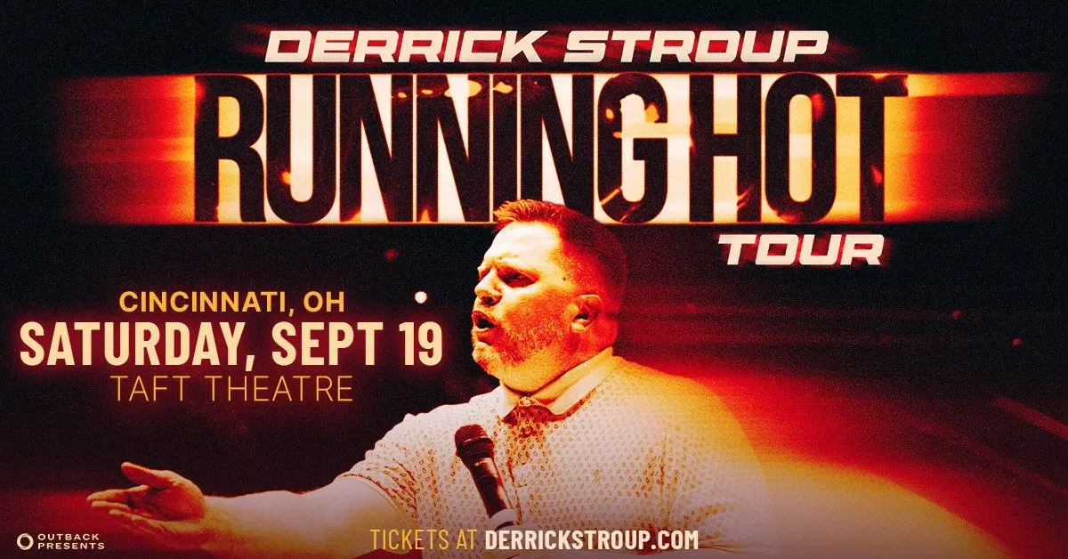 Cincinnati, OH (3/9/26) – Outback Presents is proud to announce that comedian Derrick Stroup is embarking on his first-ever headlining theater tour this fall.  Stroup is bringing the Running Hot Tour to Cincinnati, OH for a performance at Taft Theatre on Saturday, September 19.